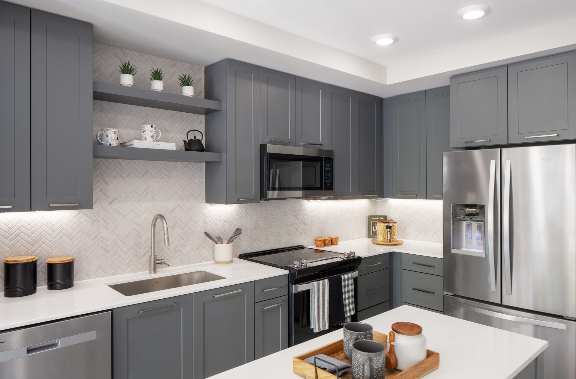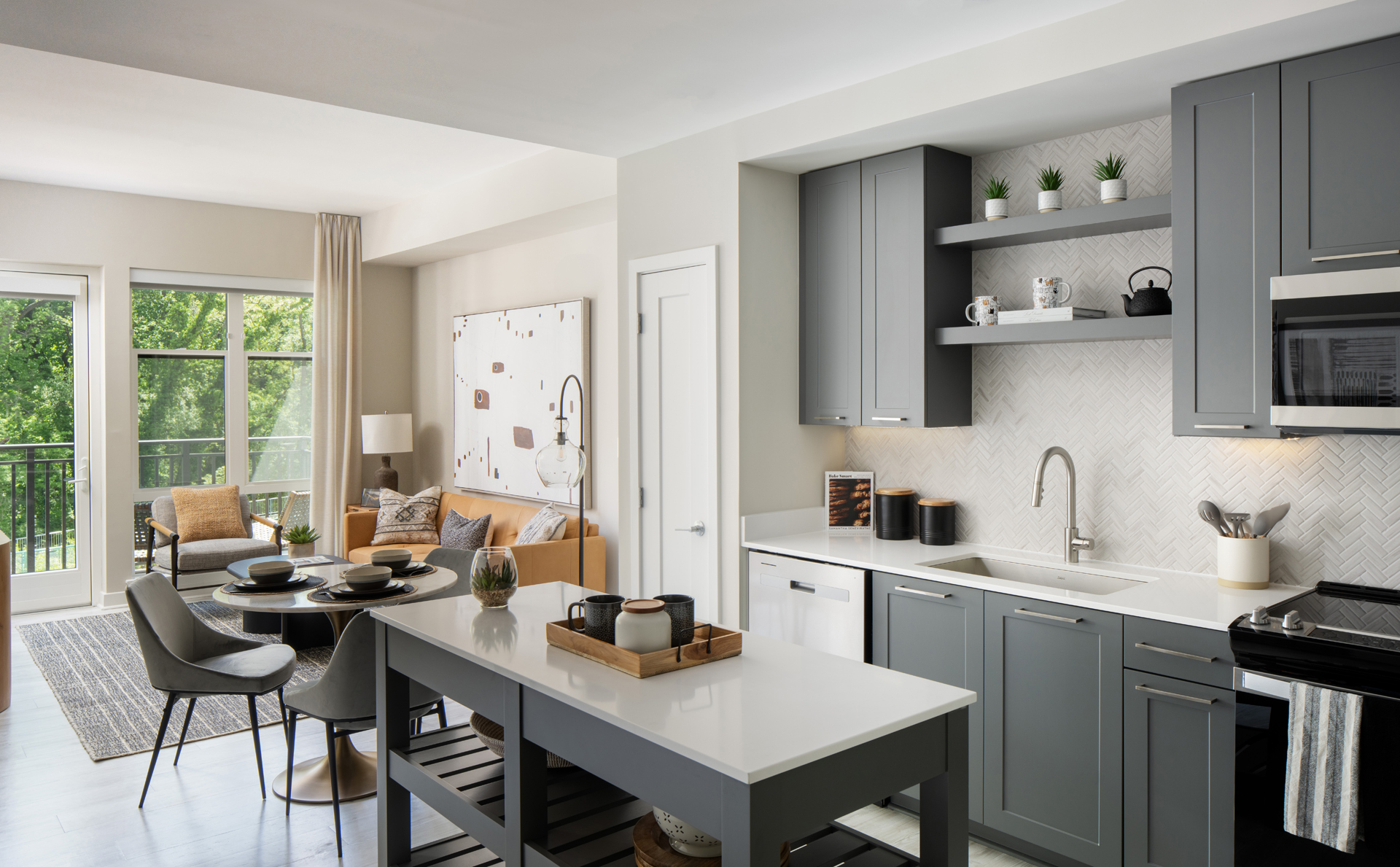 The Aventon Huntington Station Model Home exemplifies contemporary apartment living designed for the modern resident. Located within the dynamic multifamily community in Alexandria, Virginia, this thoughtfully appointed model showcases Hartman Design Group's expertise in creating warm, inviting residential interiors that balance style with functionality.