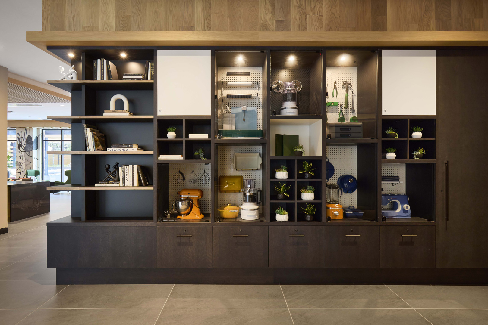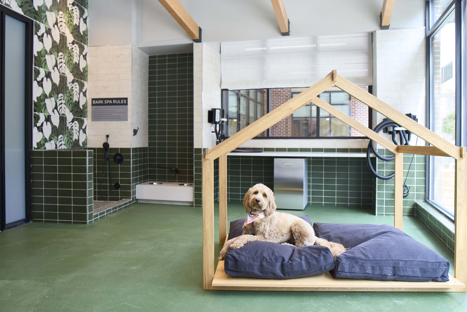 This seven-story, 270-unit pet-friendly apartment home was designed to have a visual connection from Washington Blvd, a fun and lively streetscape, to the private courtyard that holds pride of place in the center of the building. Biophilic patterns throughout the interior enhance the connection to nature and provide a sense of well-being in this urban community. The building is amenity-rich, with a focus on health, pets, social engagement, and physical activity. The fitness center, bike room, bike maintenance shop, coworking, and a fully appointed pet spa are located along the front of the building where those passing by can enjoy the activity within. Allowing vistas to the outdoors from every point, the clubroom, sports bar, and work pods connect to the courtyard with floor-to-ceiling windows and the self-serve market and lending library provide residents with every convenience.
